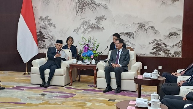 Pantaun detikcom di Li Yuan Resort, Sabtu (16/9/2023), pertemuan dimulai pukul 16.10 waktu setempat. Dalam pertemuan ini Ma'ruf didampingi oleh Duta Besar RI untuk China, Djauhari Oratmangun.