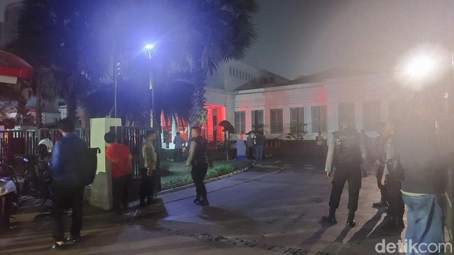 Pantauan detikcom di lokasi, Sabtu (16/9/2023) pukul 21.30 WIB, sejumlah mobil pemadam kebakaran terparkir di tepi Jalan Merdeka Barat. Ada juga mobil polisi bersiaga di lokasi.