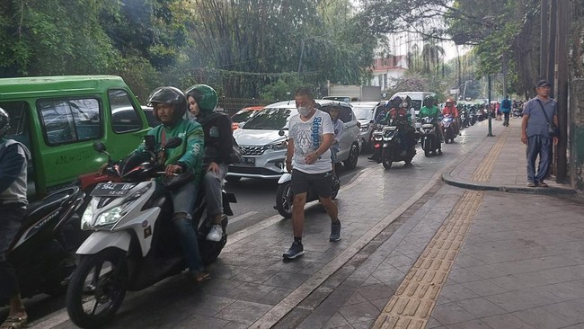 "Hampir setiap hari, mas (pemotor naik trotoar), kalau macet pasti mereka naik (ke trotoar). Kadang ada pedagang sengaja taruh kursi di trotoar, maksudnya biar motor nggak lewat situ, eh kadang malah digeser sama yang motor," kata Dadan, warga yang ditemui di pinggir Jl Juanda, Senin (18/9/2023).
