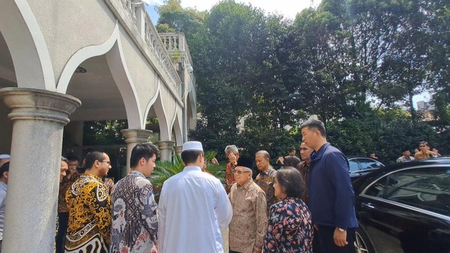 Pantauan detikcom di Masjid Pudong, Jalan Yuansheng, Distrik Pudong, Shanghai, China, Senin (18/9/2023), Ma'ruf tiba di pukul 12.20 waktu setempat. Ma'ruf tampak disambut oleh Wakil Imam Masjid Pudong Shanghai, Abdul.