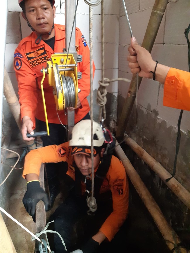 "Alhamdulillah korban selamat, korban hanya lemas, mungkin kekurangan oksigen ditambah hirup gas juga. Jadi sebelum ditarik ke atas, kita kirim tabung oksigen dulu," ucap Andra.