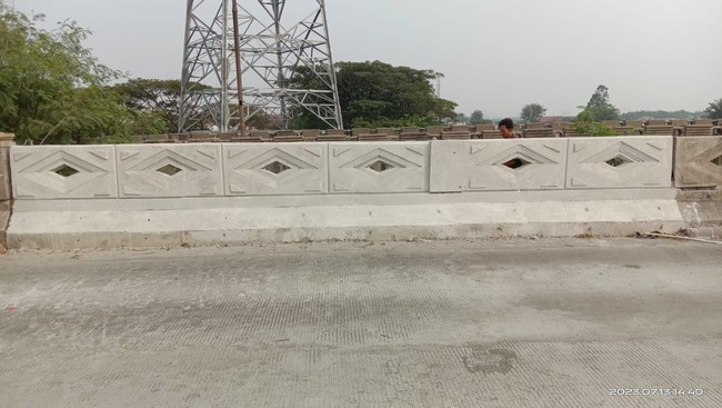 Perbaikan jembatan kali ini sudah bukan lagi berupa pembuatan pagar beton sebagai pengganti pagar beton yang ambrol Desember lalu, karena itu sudah selesai. Perbaikan jembatan kali ini dilakukan untuk menyempurnakan kondisi lain di ruas jalan kawasan Cilincing, Marunda, Jakarta Utara ini.