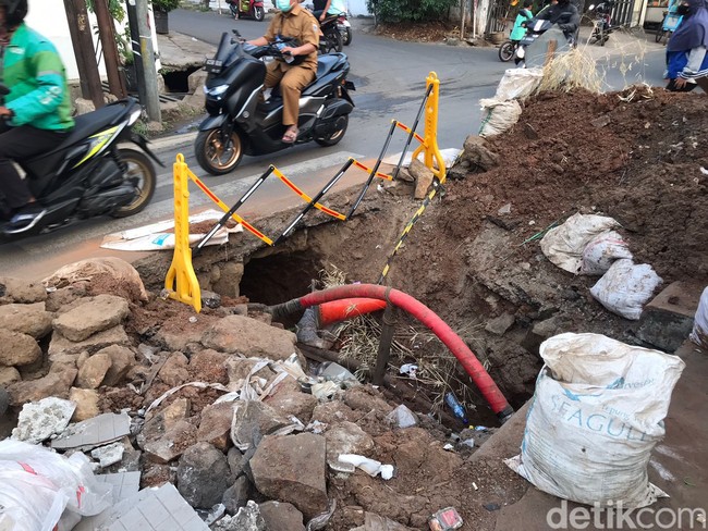 Sebelumnya, detikcom meninjau lokasi ini pada Senin (18/9). Lokasinya adalah jalan menuju Stasiun Tebet. Galian tersebut berdampak langsung kepada pengendara yang melintasi lokasi depan Apotek Farmaku itu. Kendaraan satu dengan kendaraan lainnya harus bergantian melewati galian itu.