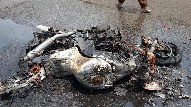 "Akibat kejadian tersebut sepeda motor yang dikendarai saudara RM terbakar sedangkan RM mengalami luka ringan," kata dia.