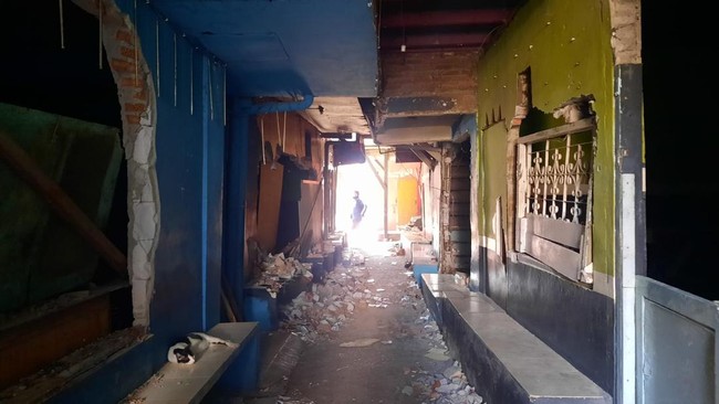 Pantauan detikcom, Jumat (22/9/2023), ada sejumlah bangunan yang sudah dibongkar. Pembongkaran bangunan dilakukan bertahap, terlihat bangunan-bangunan yang baru dibongkar sebagian.