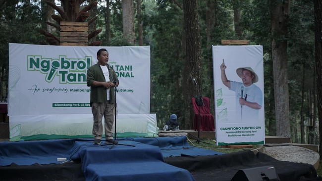 Stafsus Menaker RI, Caswiyono Rusydie CW menghadiri kegiatan Ngobrol Tani di Sikembang Park, Batang, Minggu (23/9). Mengusung tema 'Ayo Sengkuyung Membangkitkan Pertanian Batang', kegiatan ini digelar dalam rangka memperingati Hari Tani Nasional.
