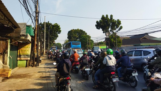 Pantauan detikcom di lokasi, Senin (25/9/2023) pukul 07.45 WIB, kendaraan terlihat memenuhi seluruh ruas jalan. Baik roda empat maupun roda dua.