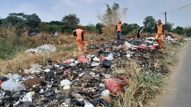 Sampah-sampah rumah tangga dilempar orang tak bertanggung jawab di pinggir jalan daerah Tanah Merah Depok, Jawa Barat (Jabar). Menanggapi hal itu, Kepala Dinas Lingkungan Hidup dan Kebersihan (DLHK) Kota Depok, Abdul Rahman, mengerahkan petugas untuk membersihkan sampah di lokasi tersebut.