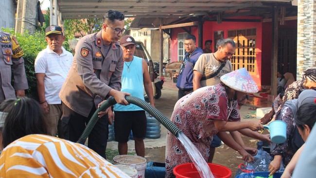 Polsek Bojongsari mendistribusikan air bersih ke wilayah yang dilanda kekeringan. Kapolsek Bojongsari Kompol Yefta Ruben mengatakan pendistribusian air bersih itu dilaksanakan di RT 4 RW 2, Duren Mekar, Bojongsari, Depok.