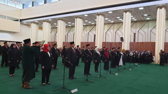 Sebagai informasi, acara ini merupakan Upacara Pelantikan dan Pengambilan Sumpah/Janji Jabatan Pimpinan Tinggi Madya (Eselon Ib), Pimpinan Tinggi Pratama (Eselon IIa), Administrator, Pengawas, Jabatan Fungsional, dan Pegawai Pemerintah dengan Perjanjian Kerja.