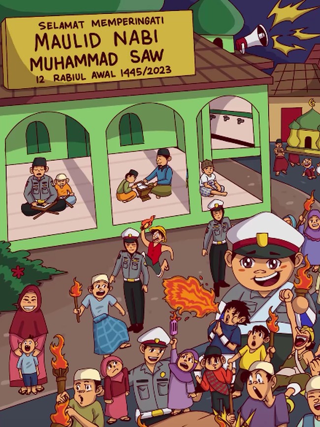 Unggahan ucapan Maulid Nabi Muhammad di akun Sigit tampak menarik. Di sana digambarkan suasana laki-laki dan perempuan dari beragam usia yang memperingati Maulid Nabi Muhammad.