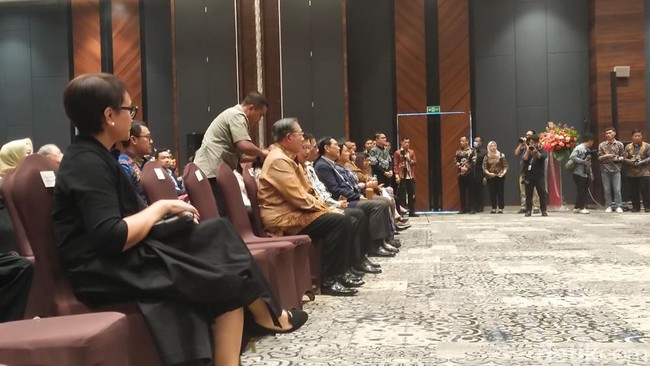 Pantauan detikcom di Hotel Sopo Del Tower, Kamis (28/9/2023) petang, Luhut menyambut para tokoh yang hadir di acaranya. SBY sempat meminta maaf atas keterlambatannya hadir di acara.