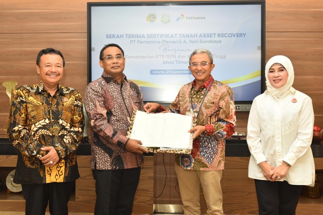 Sebagai informasi, hadir dalam kesempatan tersebut Direktur Penunjang Bisnis PT Pertamina (Persero) Erry Widiastono, Direktur Pengaturan Tanah Pemerintah Kementerian ATR/BPN Sri Pranoto, dan Kepala Kejaksaan Tinggi Jawa Timur Mia Amiati.