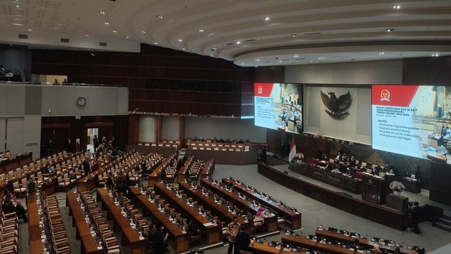 Rapat paripurna digelar di gedung MPR/DPR, Senayan, Jakarta, Selasa (3/10/2023), sekitar pukul 10.00 WIB. Rapat dipimpin oleh Wakil Ketua DPR RI Sufmi Dasco Ahmad bersama Wakil Ketua DPR RI Rachmat Gobel hingga Lodewijk F Paulus.
