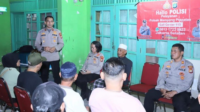Kapolsek Mampang Prapatan Kompol David Yunior Kanitero berdialog dengan warga di Kuningan Barat, Kecamatan Mampang Prapatan, Jakarta Selatan. Dalam dialog tersebut, Kompol David menerima sejumlah pengaduan warga.