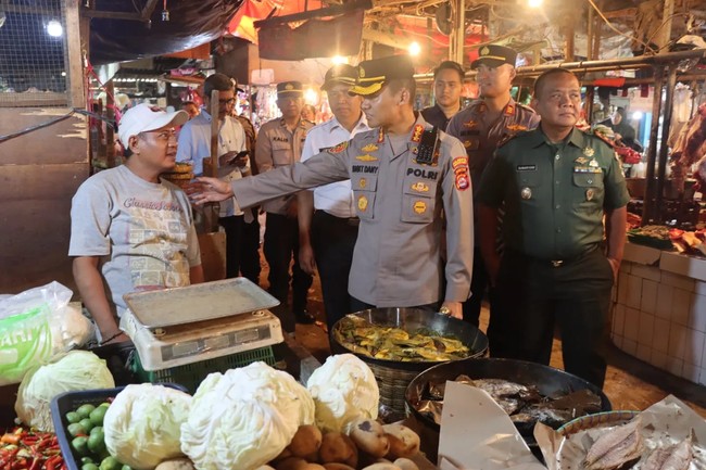 Kombes Sigit menyambangi Pasar Kutabumi di Kecamatan Pasar Kemis, Kabupaten Tangerang, Rabu (4/10/2023) pagi. Sigit berkeliling pasar sambil menyapa para pedagang.