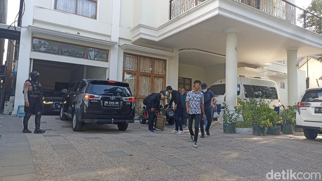 KPK menggeledah rumah pribadi Menteri Pertanian (Mentan) Syahrul Yasin Limpo (SYL) di Kota Makassar, Sulawesi Selatan (Sulsel). Aparat kepolisian tampak berjaga di lokasi.