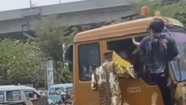 Tampak dalam video sopir truk tersebut dianiaya oleh sekelompok orang yang diduga rombongan pengantar jenazah. Bahkan terlihat seorang pria menaiki truk dan menendang sopir di bagian wajahnya.