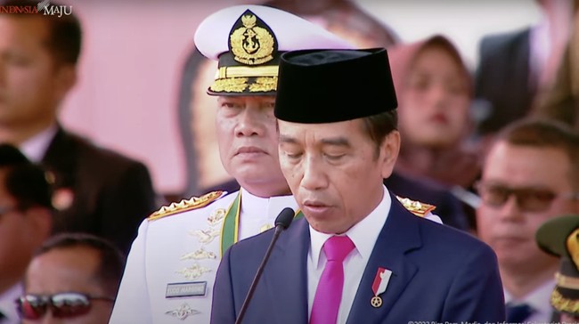 "Terima kasih atas dedikasi, atas keberanian, profesionalisme dan pengabdian seluruh anggota TNI yang menjadi benteng terdepan pertahanan negara, yang menjadi kekuatan pelindung rakyat, yang menjadi perisai penjaga NKRI, perisai penjaga Pancasila, perisai penjaga UUD 1945," ujar Jokowi.