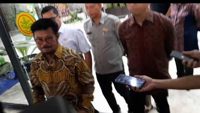 SYL langsung masuk ke mobil. Dia kemudian pergi meninggalkan area Kementan.