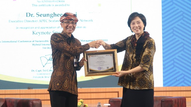 Narasumber kedua yaitu Dr. Seunghee Choi yang hadir langsung dari Korea untuk menyapa para peserta yang sangat antusias. Selanjutnya narasumber dari Australia hadir secara virtual yaitu Prof. Kerry Brown, dilanjutkan oleh Prof. Ari Purbayanto, Ph.D, salah satu narasumber dari Indonesia selain Dr. Capt. Antoni Arif Priadi, M.Sc., dan ditutup oleh narasumber terakhir dari Inggris yaitu Capt. Qasim Masood, Msc.