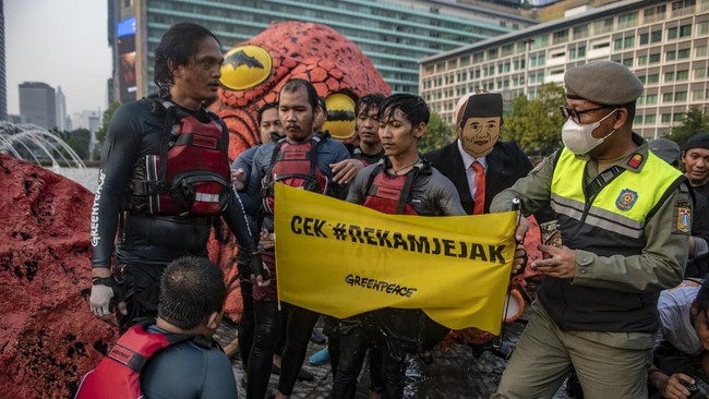 Senior Forest Campaigner Greenpeace Southeast Asia, Asep Komarudin, mengatakan bahwa aksi itu dilakukan sebagai bentuk protes atas sejumlah isu, terutama menjelang kampanye pemilu 2024.