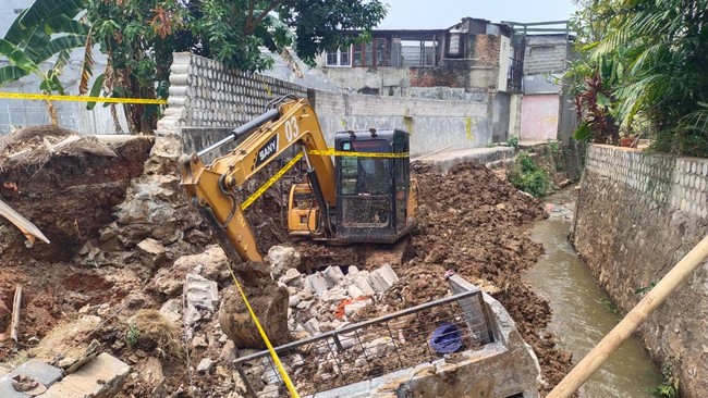 Di saat bersamaan, ada pekerja yang menggali kali menggunakan ekskavator. Diduga karena getaran ekskavator tersebut, tembok di atasnya roboh dan menimpa korban.
