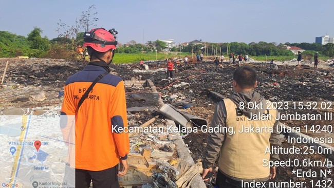 "Objek kejadian (terbakar) 1 gudang dan tumpukan Sampah. Dugaan penyebab pembakaran sampah. Objek terdampak gudang rongsok," ujar Kepala Badan Penanggulangan Bencana Daerah (BPBD) DKI Jakarta Isnawa Adji, dalam keterangannya, Minggu (8/10/2023).