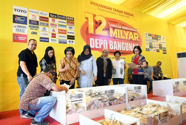 "Setelah penarikan Tahap Pertama yang dilakukan pada 3 Juni 2023, kali ini Depo Bangunan melakukan proses penarikan Tahap II dengan hadiah berupa 199 paket voucher belanja senilai Rp 10.000.000 untuk kupon Silver. Sedangkan kupon Gold akan mendapatkan paket uang tunai senilai Rp 30.000.000 untuk 30 pemenang beruntung," ujar Kam, dalam keterangan tertulis, Rabu (11/10/2023).