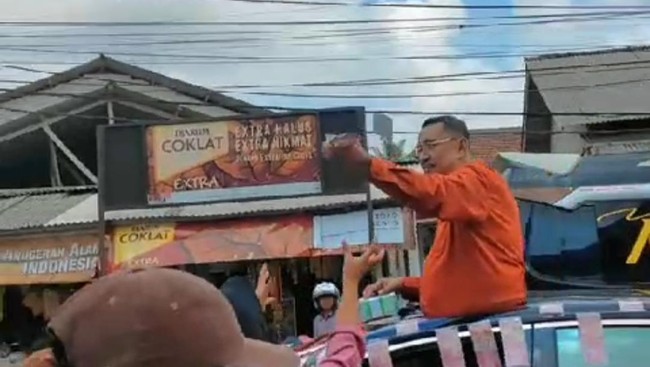 Berdasarkan video yang dilihat detikcom, Jumat (13/10/2023), tampak Endang Suhendar membagikan uang kepada masyarakat di jalan raya. Dia menaiki mobil berwarna hitam yang dihiasi uang pecahan seratus ribu.