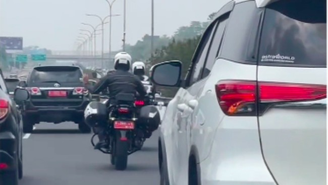 Dalam video yang beredar, tampak dua unit motor berpelat merah itu melaju di sisi kanan jalan tol atau jalur cepat. Sepeda motor itu bernopol F-3991-G dan F-6970-G.