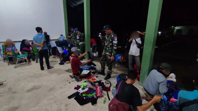 "Ada juga anggota kami, di situ daerah sawit, di situ ada banyak anak, ibu, bapak, ada sekitar 40 lebih, habis itu kita tahan di situ. Kami sinkronkan, kami tanya-tanya, ternyata yang awal kami tangkap itu penunjuk jalannya, yang sekitar 45 orang itu yang PMI-nya itu, habis itu kami laporan ke komandan," jelasnya.