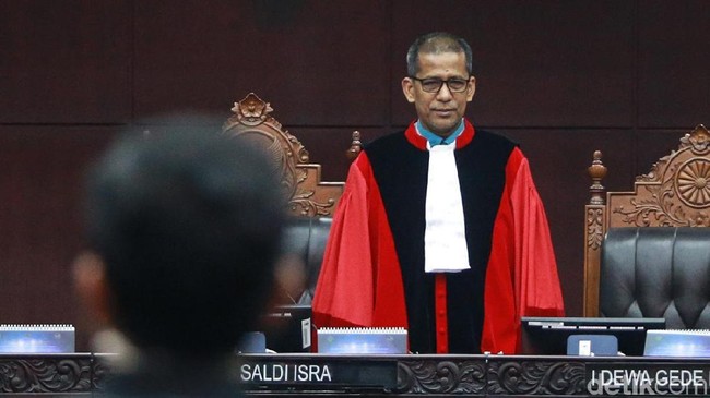 "Tidak ada ketentuan mengenai persyaratan usia yang dapat dipersamakan atau disetarakan dengan persyaratan usia capres dan cawapres sebagaimana diatur dalam norma Pasal 169 huruf q UU Nomor 7 Tahun 2017," kata hakim konstitusi Saldi Isra di sidang MK, Senin (16/10/2023).
