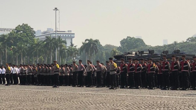 Apel digelar di Lapangan Silang Monas, Jakarta Pusat, Selasa (17/10/2023) pagi. Sebanyak 2.926 personel peserta ikut dalam apel operasi terpusat ini.