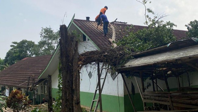 Kabid Kedaruratan dan Logistik BPBD Kabupaten Bogor Muhammad Adam Hamdani mengatakan rumah warga rusak diterjang angin kencang. Selain itu, atap sekolah dasar rusak tertimpa pohon tumbang akibat angin kencang, pada Senin (16/10/2023).