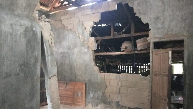 Rumah yang bagian temboknya hancur itu itu milik Sahli (77), warga Dusun Cisodong, Desa Sindangsari, Kecamatan Cimerak. Data rumah rusak akibat gempa tersebut dicatat oleh Taruna Siaga Bencana (Tagana) Pangandaran.