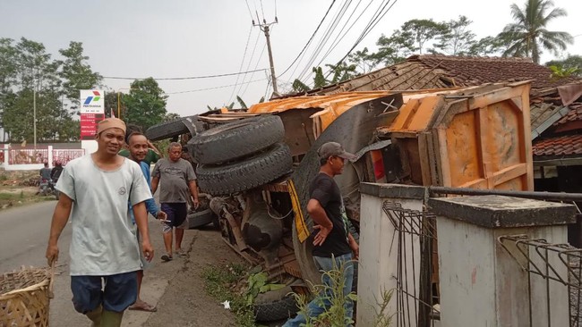 "Terjadi kecelakaan tunggal satu unit truk dikarenakan tidak kuat menanjak, mundur lagi dan kebanting ke sebelah kanan ke rumah warga," kata Iwan kepada wartawan, Senin (23/10/2023).