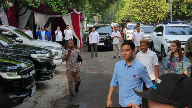 Gibran Rakabuming Raka mendatangi rumah Prabowo Subinato di Jakarta Selatan sebelum berangkat ke KPU. Menteri Investasi/Kepala BKPM Bahlil Lahadalia ikut mendampingi Gibran saat tiba di Jalan Kertanegra IV itu.