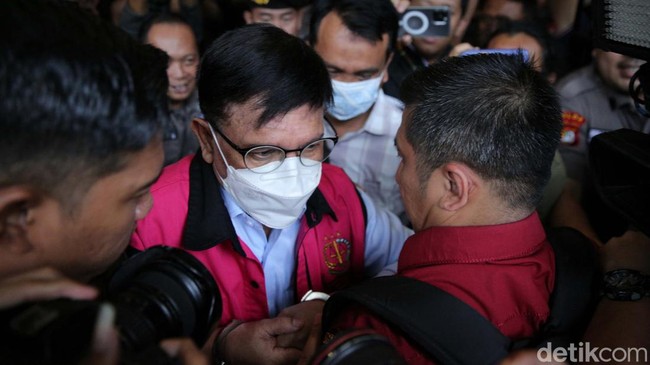 Johnny G Plate dituntut hukuman penjara. Jaksa meyakini Plate terbukti bersalah melakukan tindak pidana korupsi proyek BTS 4G Kominfo secara bersama-sama dengan terdakwa lain.