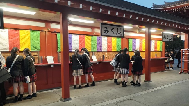 Nah kembali ke cerita soal prediksi yang saya sebut di atas. Sejatinya salah satu hal yang menarik di kuil itu adalah Omikuji atau semacam ramalan di secarik kertas yang lazim ditemui di kuil-kuil Buddha atau Shinto di Jepang.