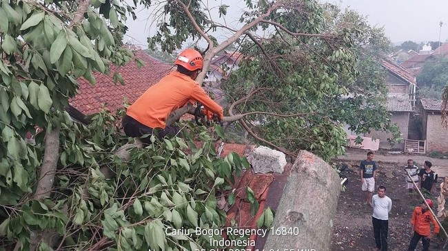 "Situasi saat ini pohon yang tumbang menimpa rumah sudah selesai ditangani oleh Tim TRC BPBD Kabupaten Bogor. Sebagian rumah rusak ringan sudah diperbaiki oleh pemiliknya," imbuhnya.