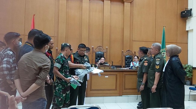 "Kesatu primer Pasal 340 KUHP juncto Pasal 55 (1) ke-1 KUHP, secara bersama-sama melakukan pembunuhan berencana, subsider Pasal 338 KUHP juncto Pasal 55 (1) ke-1 KUHP, secara bersama-sama melakukan pembunuhan," kata Oditur Militer membacakan dakwaan.