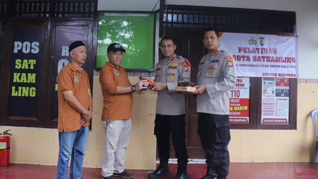Kapolsek Mampang Prapatan Kompol David Y Kanitero melatih anggota Satkamling di kawasan Bangka, Mampang, Jakarta Selatan. Pelatihan diberikan untuk meningkatkan keamanan dan ketertiban masyarakat.