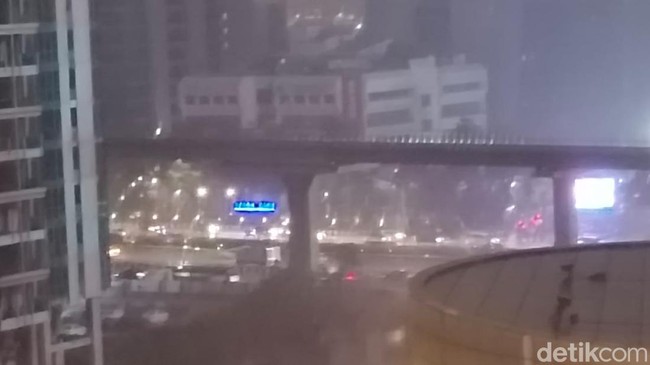Di kawasan Polda Metro Jaya, hujan juga terpantau terjadi sekitar pukul 19.28 WIB. Hujan terpantau turun cukup deras.