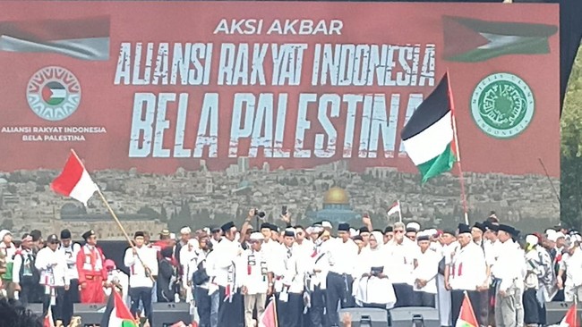 "Biar dunia menyaksikan dari Lapangan Medan Merdeka dikirimkan pesan kemerdekaan untuk Palestina. Allahu Akbar," ujar Anies.