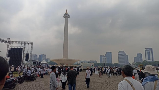 Aksi bela Palestina yang digelar di kawasan Monas, Jakarta Pusat, telah selesai. Massa aksi pun berangsur meninggalkan lokasi.
