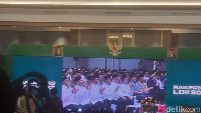 Presiden Joko Widodo (Jokowi) menghadiri Rapat Kerja Nasional Lembaga Dakwah Islam Indonesia (LDII). Sejumlah pejabat turut mendampingi Jokowi.