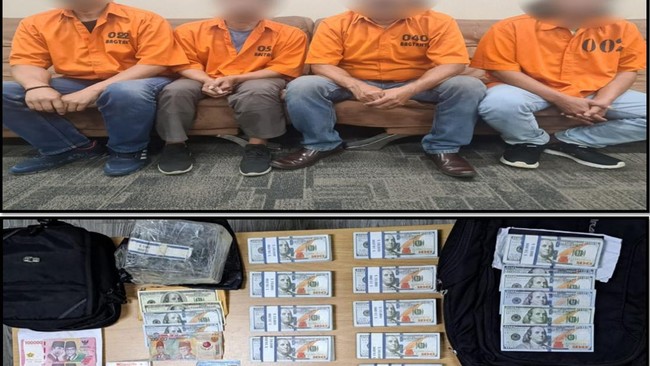 "Di mana pada saat itu terduga pelaku (AGS) datang bersama-sama dengan saudara (KB), (DS), dan saudari (TH) dengan membawa tas berisi uang asing pecahan USD 100 yang diduga palsu sebanyak 995 lembar mata uang asing pecahan USD 100 yang dibawa/ditenteng oleh saudara (KB)," sambungnya.
