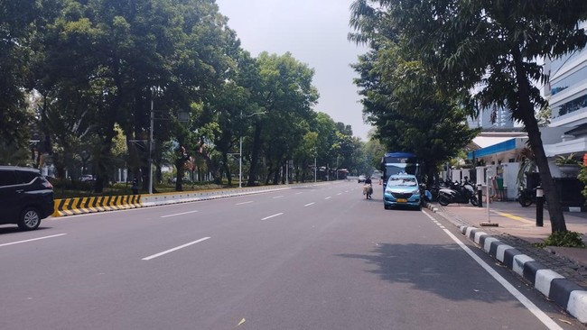 Pantauan detikcom di lokasi, Selasa (6/11/2023), pukul 11.27 WIB, polisi telah menutup Jalan Medan Merdeka Barat di sekitar Patung Kuda. Penutupan dilakukan dengan pemasangan beton pembatas dan kawat berduri.
