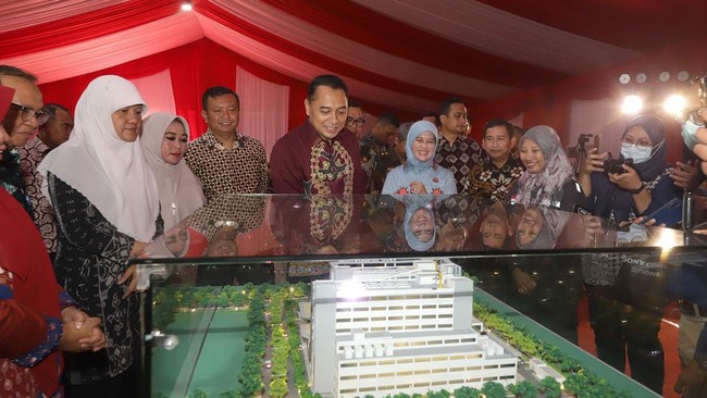 Pemerintah Kota (Pemkot) Surabaya mulai melaksanakan pembangunan Rumah Sakit Umum Daerah (RSUD) Surabaya Timur pada Kamis (5/11/2023). Sebagai tahap awal pembangunan, Wali Kota Surabaya Eri Cahyadi melakukan groundbreaking atau peletakan batu pertama.
